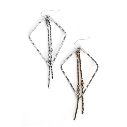 Brass Rectangle Earrings with Silver Rolo Accent