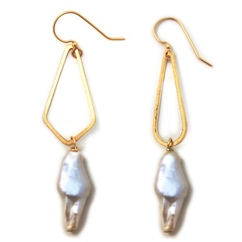 Small Brass Shape/Pearl Earrings