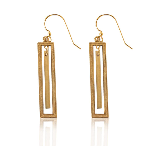 Brass Rectangle Earrings with Bar Accent